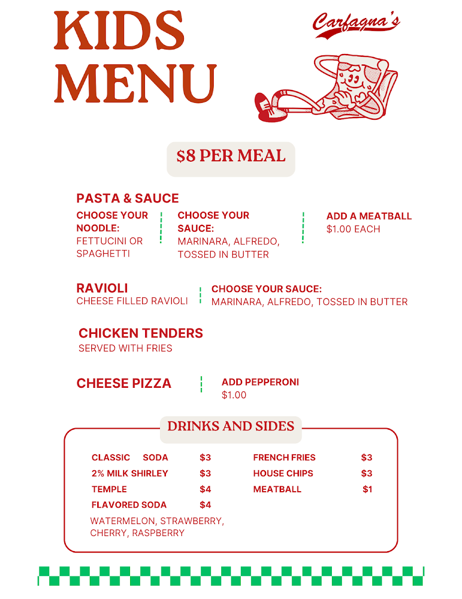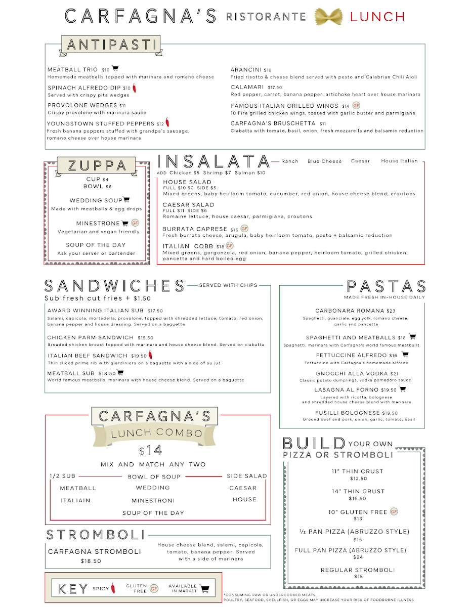 Whether you’re here for a family gathering or a casual evening out, Carfagna's ensures a memorable dining experience with their flavorful offerings and inviting service. Don't miss out on their incredible happy hour deals!